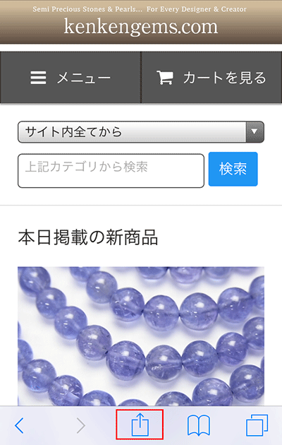 ・はじめに【当店トップページ】で画面下の赤で囲んだ「追加・共有ボタン」をタップします。